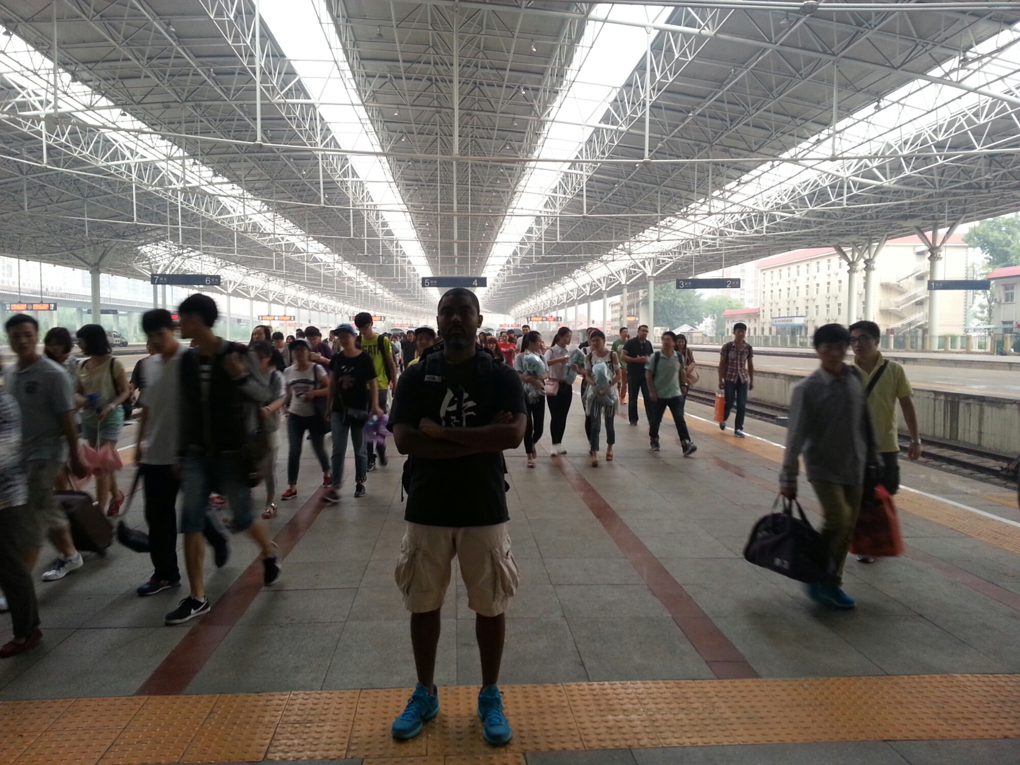 Shocked at my response, he gasped. I assured him that I was only joking. Relieved, he continued to inquire about me. Although I was less interested in talking with him, having done so I made a new friend. His friendship came in handy too. At one stop, passengers exited, there was an opportunity for us to move from the floor to seats. Like George and Weezy we were movin’ on up! He was gracious enough to give me the only seat that became available. After arriving at the train station, he was also gracious enough to snap my photo so I would be able to remember these moments.