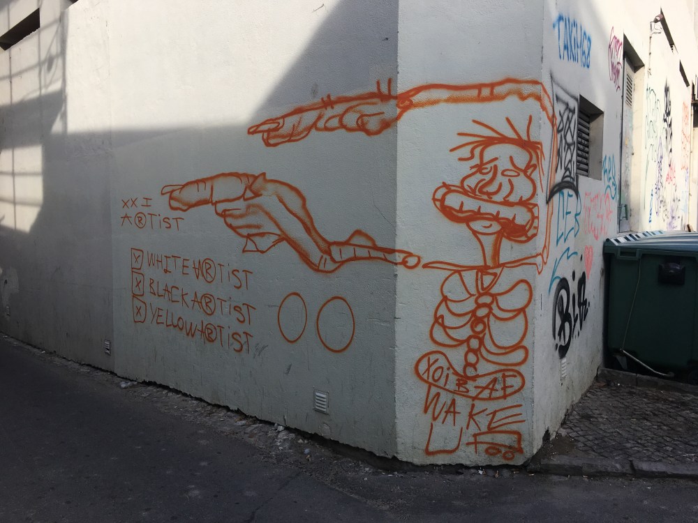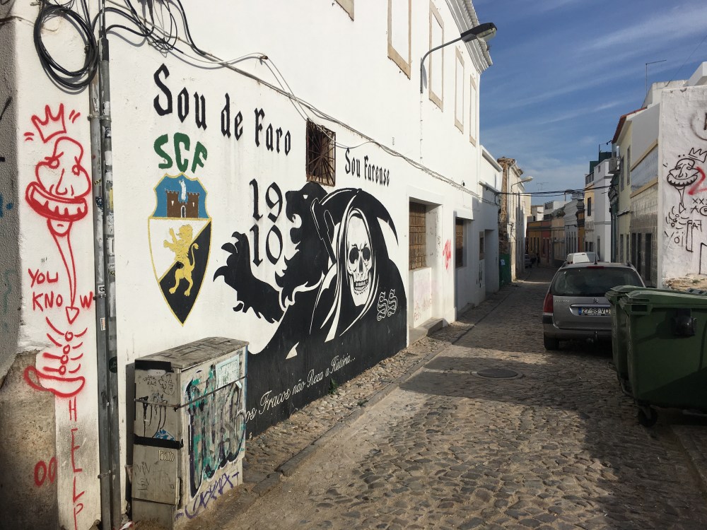 Faro is covered in graffiti. One of the most prolific graffiti artist goes by the name WASP.